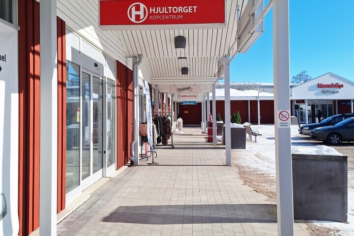 Rektangulär och lättöverskådlig butikslokal belägen i Hjultorgets Köpcentrum. Lokalen omfattar ca 126 kvm fördelat på ca 105 kvm säljyta och ca 20 kvm butikslager och personalutrymmen såsom pauskontor, wc och städ. Butiksfönster ut mot parkeringsytor. Utrustad med komfortkyla lämpar sig denna lokal extra bra för t ex butik eller frisörsalong. Denna lokal har ett ypperligt läge med flera starka grannar som t ex Doz Apotek, Hemköp och Iittala outlet.